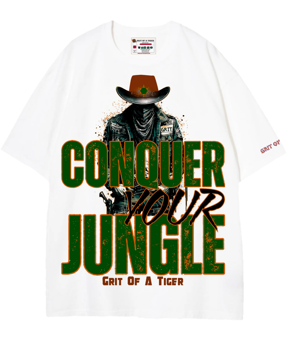 Luxury Streetwear Tee – Conquer the Jungle Graphic Shirt (White)